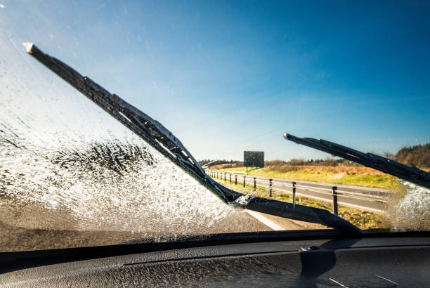 Rubber wiper blades naturally deteriorate over time. If wipers streak or fail to clear the windshield thoroughly, replace the blades. Fill the windshield washer reservoir with fluid formulated to remove insects and other debris, and test to make sure the nozzles spray adequately.
