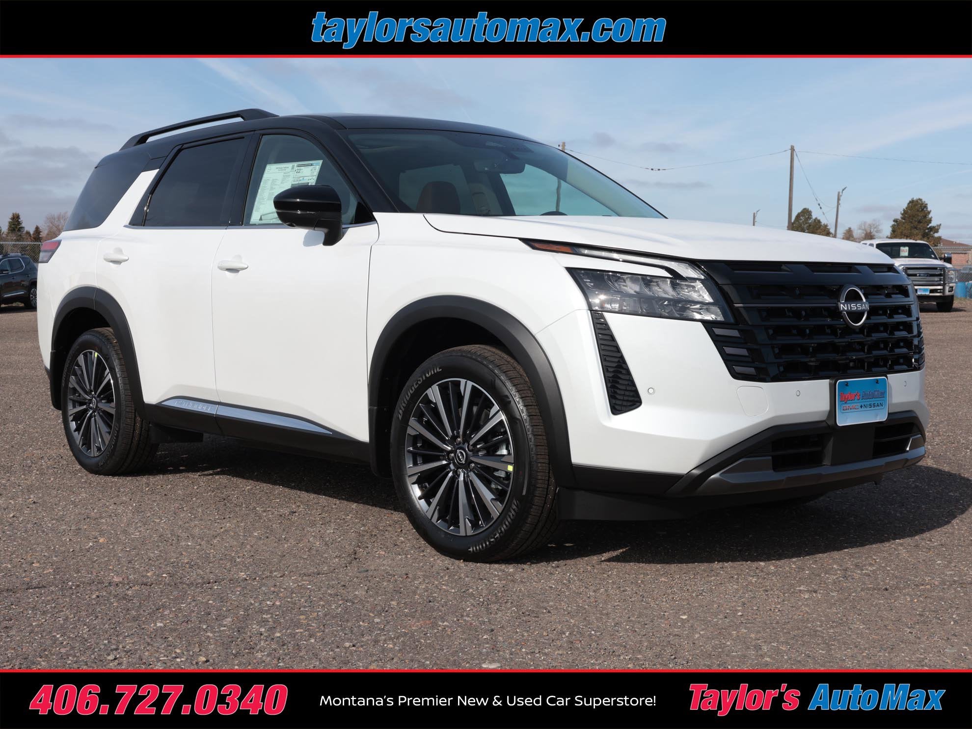 Everest White Pearl/Black 2026 Nissan Pathfinder Platinum 4WD 9-Speed Automatic 3.5L V6 DOHC Pathfinder Platinum, 4D Sport Utility, 3.5L V6 DOHC, 9-Speed Automatic, 4WD, Everest White Pearl/Black, Chestnut Leather.
