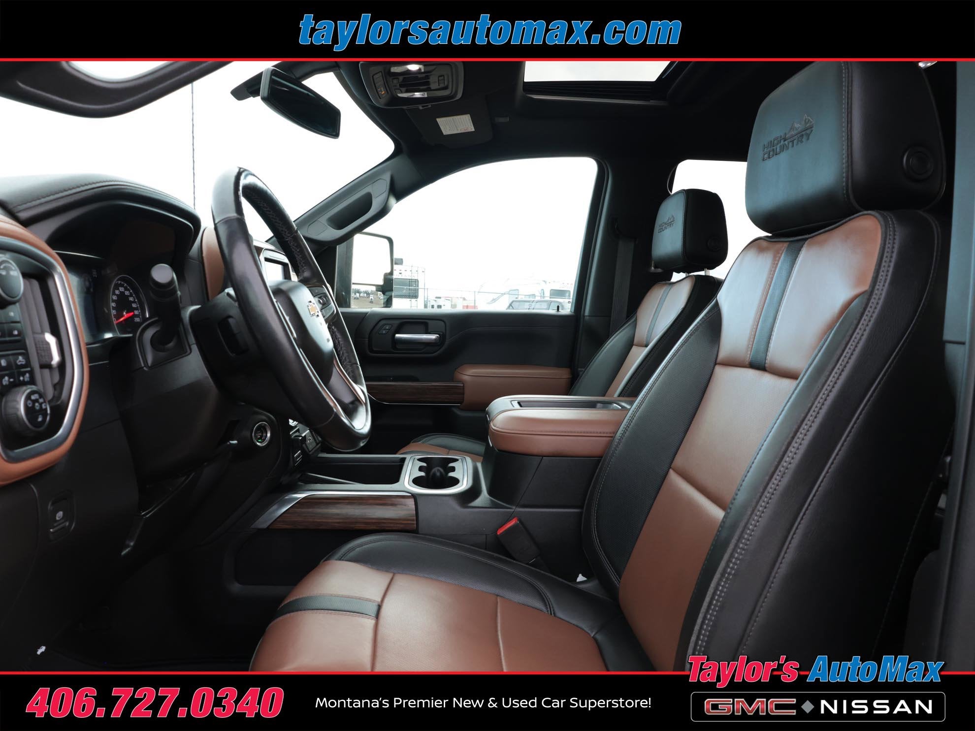 LEATHER INTERIOR, Silverado 3500HD High Country, 4D Crew Cab, Duramax 6.6L V8 Turbodiesel, 10-Speed Automatic, 4WD, Black, Jet Black/Umber w/Perforated Leather Seating Surfaces, 12-Volt Rear Auxiliary Power Outlet, 120-Volt Bed Mounted Power Outlet, 120-Volt Instrument Panel Power Outlet, 170 Amp Alternator, 2nd Row Dual USB Charge-Only Ports, 6 Rectangular Chromed Tubular Assist Steps, 8 Driver Information Center, Advanced Trailering System, Auto-Dimming Inside Rear-View Mirror, Bed View Camera w/2 Trailer Camera Provisions, Bluetooth® For Phone, Chevrolet Connected Access Capable, Chevytec Spray-On Black Bedliner w/Chevrolet Logo, Chrome Front Grille Bar w/Chrome Grille Inserts, Chrome Mirror Caps, Color-Keyed Carpeting Floor Covering, Compass Located In Instrument Cluster, Deep-Tinted Glass, Electric Rear-Window Defogger, Electrical Lock Control Steering Column, Front Carpeted Floor Mats, Front Chrome Recovery Hooks, Front LED Fog Lamps, Gooseneck/5th Wheel Prep Package, HD Surround Vision w/2 Trailer View Camera Provisions, Heated Steering Wheel, Hitch Guidance w/Hitch View, Integrated Trailer Brake Controller, Keyless Open & Start, Lane Change Alert w/Side Blind Zone Alert, Leather-Wrapped Steering Wheel, LED Cargo Area Lighting, Manual Tilt/Telescoping Steering Column, Navigation System, OnStar & Chevrolet Connected Services Capable, Polished Exhaust Tip, Power Door Locks, Power Front Passenger Windows w/Express Up/Down, Power Front Windows w/Driver Express Up/Down, Power Rear Windows w/Express Down, Power Sliding Rear Window w/Defogger, Power Sunroof, Power-Adjustable Outside Mirrors, Preferred Equipment Group 3LZ, Rear Carpeted Floor Mats, Rear Cross Traffic Alert, Remote Vehicle Starter System, SiriusXM w/360L, Standard Tailgate, Steering Wheel Audio Controls, Steering Wheel Mounted Electronic Cruise Control, Suspension Package, Unauthorized Entry Theft-Deterrent System, Universal Home Remote, Up-Level Rear Seat w/Storage Package, Wi-Fi Hotspot Capable, Wireless Charging, Wireless Phone Projection. 2022 Chevrolet Silverado 3500HD High Country Black 4WD 10-Speed Automatic Duramax 6.6L V8 Turbodiesel
