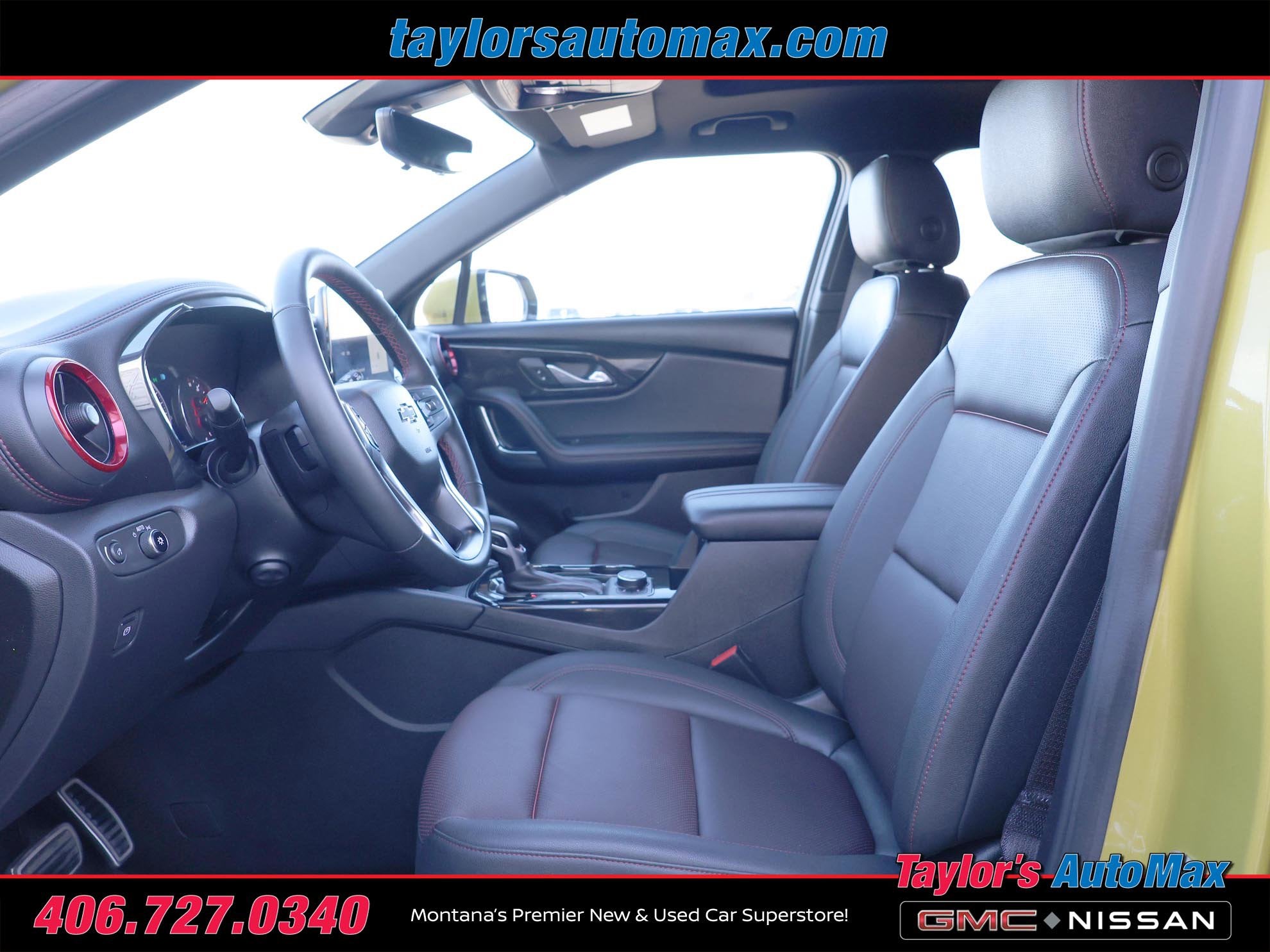 LEATHER INTERIOR, Blazer RS, 4D Sport Utility, 3.6L V6 SIDI, 9-Speed Automatic with Overdrive, AWD, Nitro Yellow Metallic, Jet Black With Red Accents Leather, Adaptive Cruise Control, Bodyside Lower Decal (LPO), Driver Confidence II Package, Enhanced Automatic Emergency Braking, Enhanced Convenience Package, HD Surround Vision, Heated Rear Outboard Seating Positions, Heated Steering Wheel, Memory Settings For Driver Seat & Exterior Mirrors, Navigation System, Pedal Cover Set, Power Panoramic Tilt-Sliding Sunroof, Power Tilt & Telescoping Steering Column, Preferred Equipment Group 1RS, Rear Camera Mirror, Rear Camera Mirror Washer, Safety Alert Seat, Sport Package, Ventilated Driver & Front Passenger Seats. 2024 Chevrolet Blazer RS Nitro Yellow Metallic AWD 9-Speed Automatic with Overdrive 3.6L V6 SIDI
