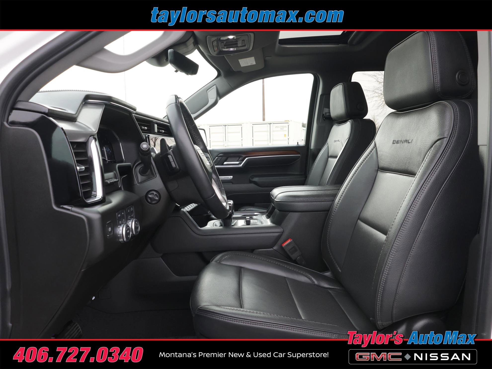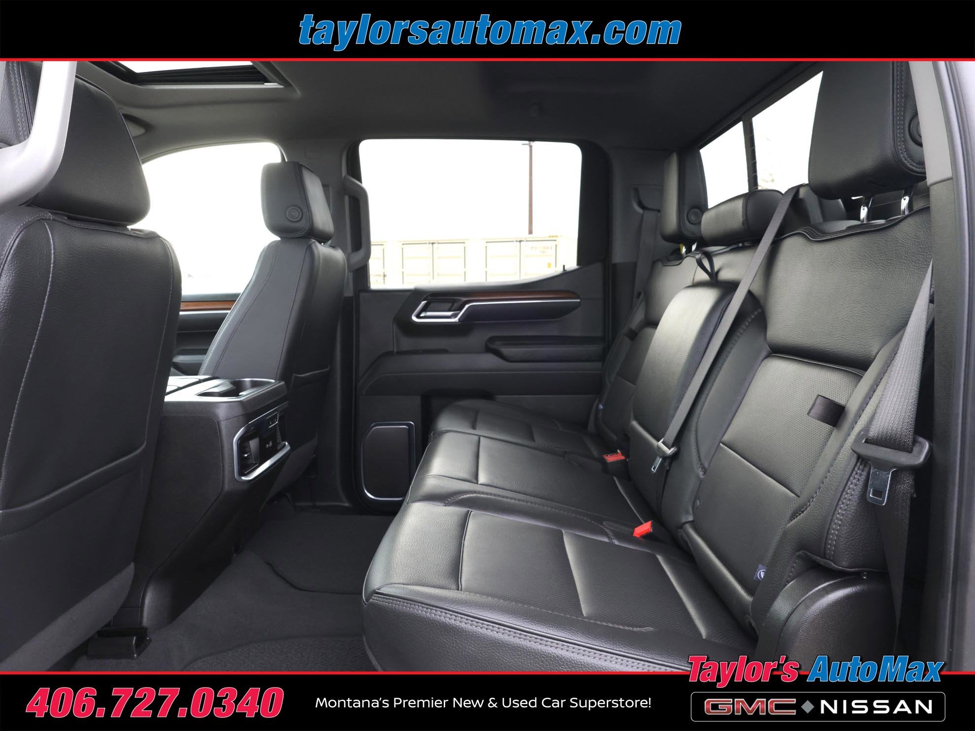 LEATHER INTERIOR, Sierra 1500 Denali, 4D Crew Cab, 3.0L I6, 10-Speed Automatic, 4WD, White Frost, Black Leather, 120-Volt Bed Mounted Power Outlet, 120-Volt Interior Power Outlet, 170 Amp Alternator, 2 Charge/Data USB Ports Inside Center Console, 2 Type-C Charge-Only Rear USB Ports, 2 USB Ports, 3 Years of Super Cruise/Digital Services by OnStar, Auto-Locking Rear Differential, Auxiliary External Transmission Oil Cooler, Bed View Camera, Chrome Header w/Signature Denali Chrome Grille, Chrome Recovery Hooks, Chrome Wheel To Wheel Assist Steps, Color-Keyed Carpeting Floor Covering, Deep-Tinted Glass, Denali Reserve Super Package, Electric Rear-Window Defogger, Floor-Mounted Center Console, Front Rain-Sensing Wipers, GMC MultiPro Power Steps, HD Surround Vision, Heated 2nd Row Outboard Seats, Heated Driver & Front Outboard Passenger Seating, Heavy-Duty Air Filter, Hill Descent Control, Hitch Guidance, Hitch View, In-Vehicle Trailering System App, Integrated Trailer Brake Controller, Keyless Open & Start, LED Cargo Area Lighting, Multicolor 15 Diagonal Head-Up Display, Navigation System, OnStar Services Capable, Perimeter Lighting, Power Door Locks, Power Front Passenger Windows w/Express Up/Down, Power Front Windows w/Driver Express Up/Down, Power Rake & Telescoping Steering Column, Power Rear Windows w/Express Down, Power Sliding Rear Window w/Rear Defogger, Power Sunroof, Preferred Equipment Group 5SA, Premium Bose 7-Speaker Sound System, Push Button Start, Rear Camera Mirror, Rear Cross Traffic Braking, Rear Pedestrian Detection, Rear Wheelhouse Liners, Remote Vehicle Starter System, SiriusXM w/360L Trial Subscription, Spray-On Pickup Bedliner w/GMC Logo, Steering Wheel Audio Controls, Super Cruise, Super Cruise Wrapped Steering Wheel, Technology Package, Theft Deterrent System (Unauthorized Entry), Trailer Camera Provisions, Trailer Side Blind Zone Alert, Trailering Package, Ultrasonic Front & Rear Park Assist, Universal Home Remote, Ventilated Driver & Front Passenger Seats, Wheel Locks (Set of 4) (LPO), Wheels: 22 x 9 Painted Aluminum, Wi-Fi Hotspot Capable, Wireless Charging. 2025 GMC Sierra 1500 Denali White Frost 4WD 10-Speed Automatic 3.0L I6